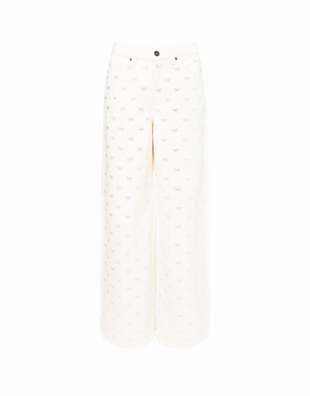 ച്വ്01416 റൈൻസ്റ്റോൺ-അലങ്കാര വൈഡ്-ലെഗ് മിഡ്-റൈസ് ഡ